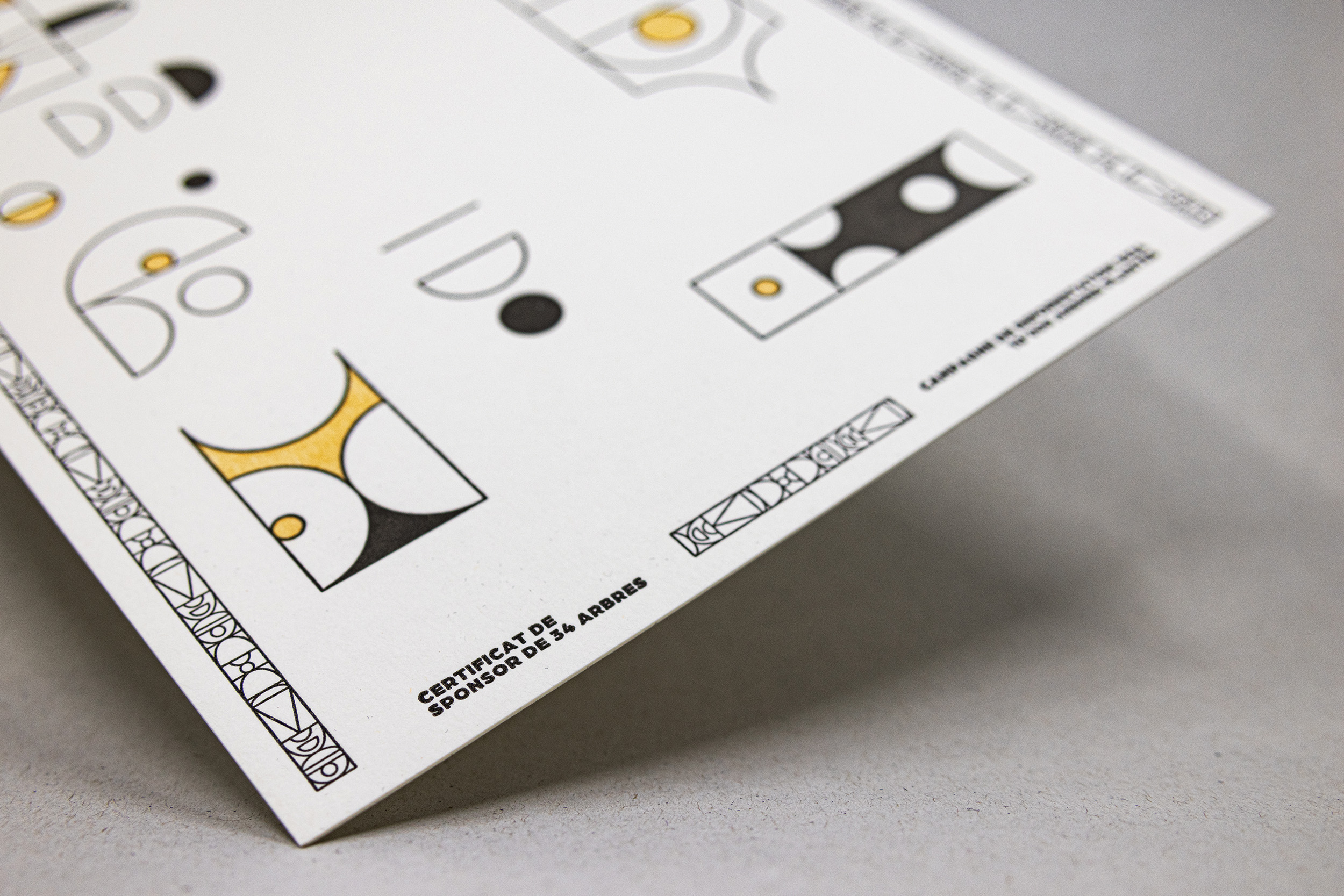 L’impression a mobilisé des techniques artisanales : sérigraphie pour le tote bag (Main Gauche) et impression douce pour les étiquettes et le certificat (Atelier Versso).Ce projet a nécessité un équilibre entre contraintes techniques et liberté créative, notamment dans le choix des encres et supports durables, en collaboration avec des imprimeur·euse·s spécialisés. Loin d’un visuel trop militant, l’objectif était de créer un kit élégant et fonctionnel, qui valorise l’engagement écologique de manière subtile et accessible.