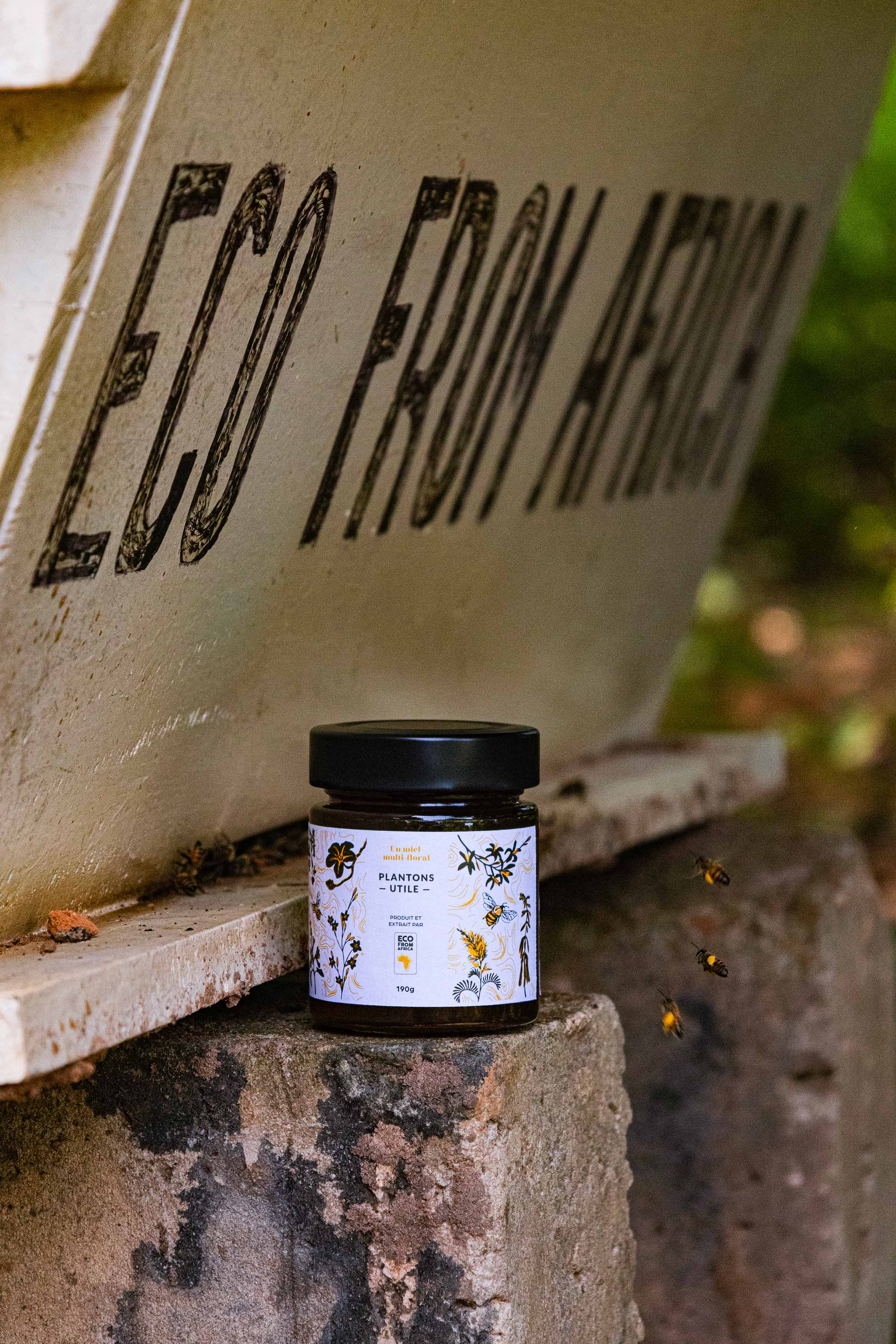 Ce kit, pensé pour allier esthétique et engagement écologique, rassemble cinq objets : un tote bag en coton recyclé, un pot de miel agroécologique, un savon artisanal, un certificat imprimé sur carton FSC et un sachet de thé de kinkéliba en papier kraft. Tous les supports ont été conçus pour minimiser leur empreinte environnementale et être facilement distribuables sans emballage superflu.